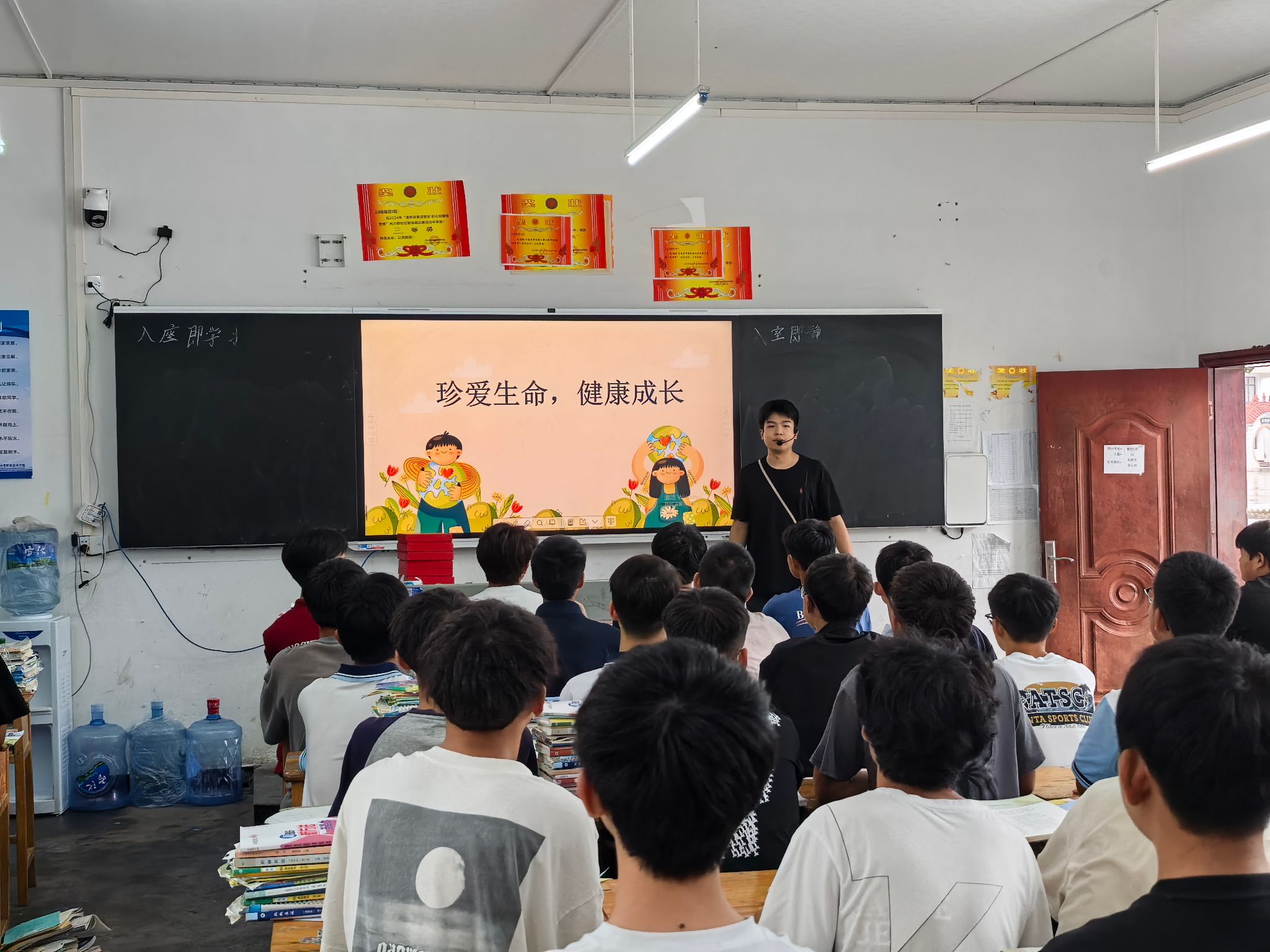 最后,班长杨斌哲组织了“心灵加油站”活动,通过“情绪垃圾桶”等互动游戏,帮助学生认识情绪管理的重要性,学会用积极心态面对挫折。学生们在“写给未来自己的一封信”环节中,写下对生命的感悟和成长目标,进一步坚定了珍爱生命、努力成长的信念。